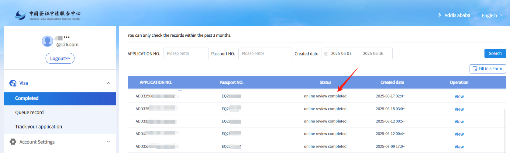 该网站为在“埃塞俄比亚”申请中国签证的申请人使用,请确保您选择了正确的地址。(注意查看页面右上方)