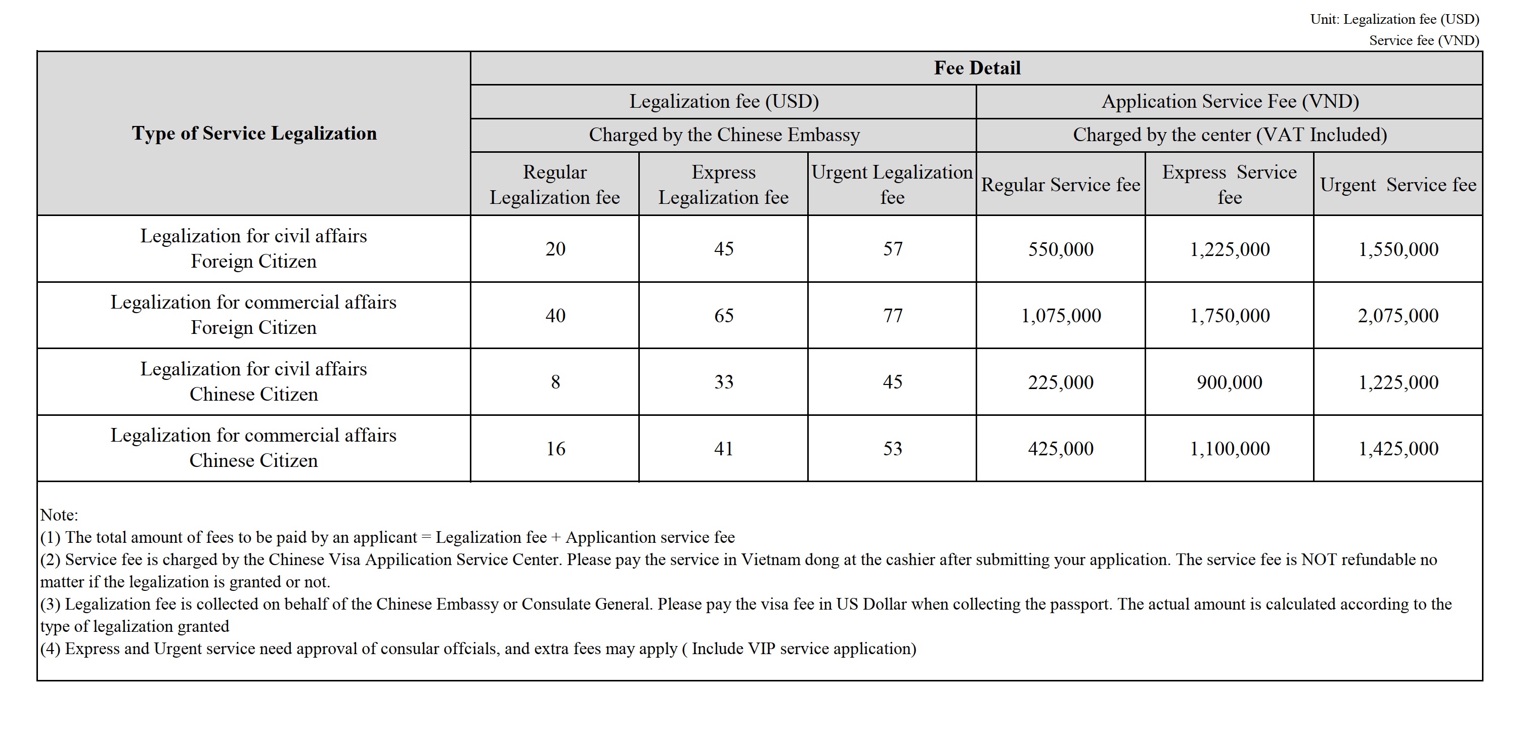 2. Service fee for consular legalization will be charged by the center on the date of application in Vietnam dong. Collected service fee will not be refunded even if your application for consular certification is refused.