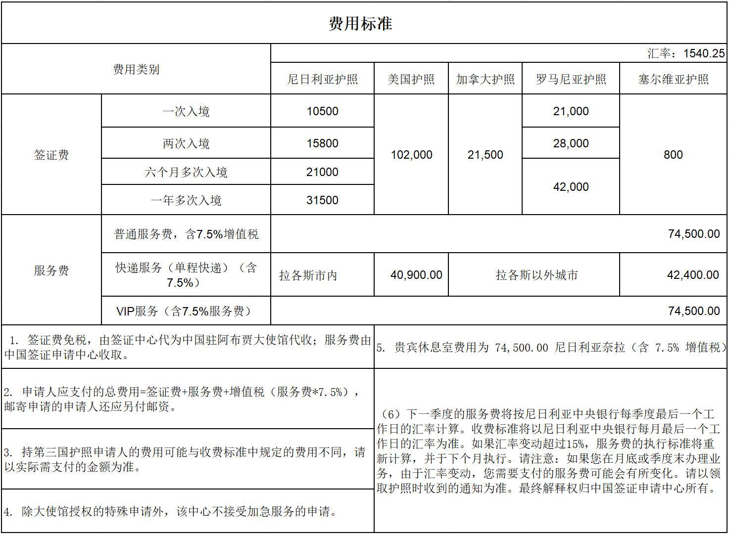 费用标准
