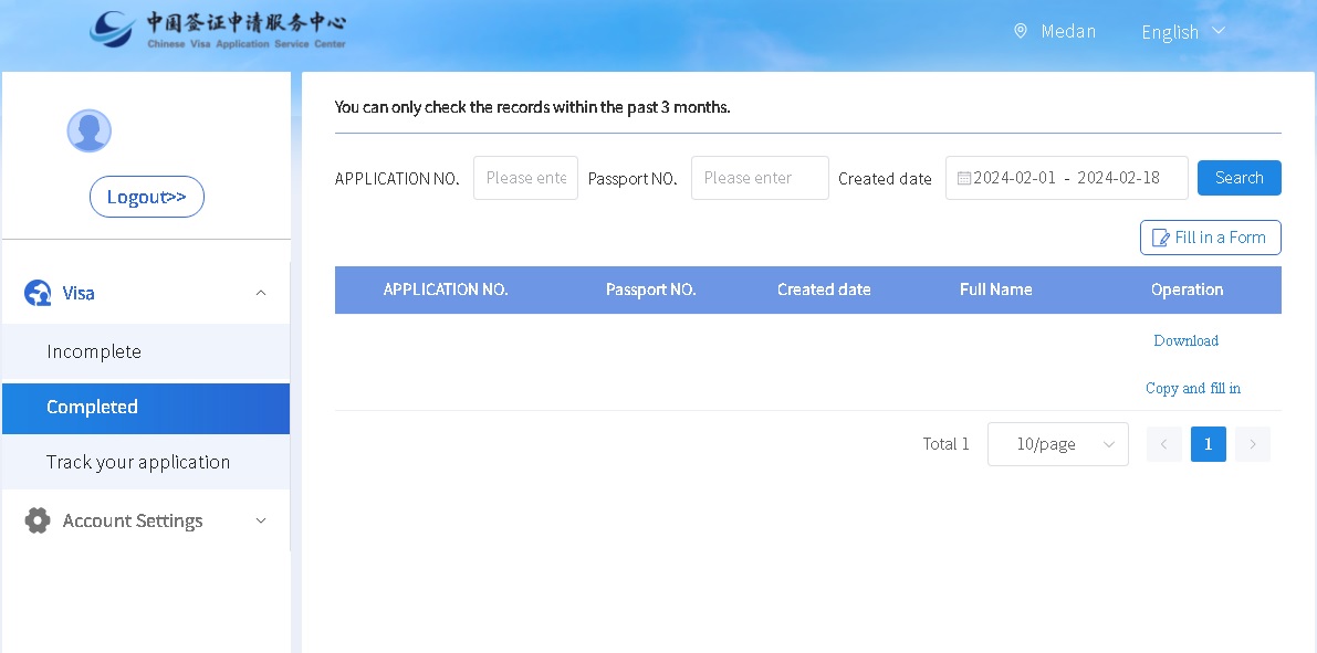 Click “Visa”->“Completed”->”copy and fill in” to copy your completed application form and modify information and create a new application form.You can only find your online application form within the past 3 months.