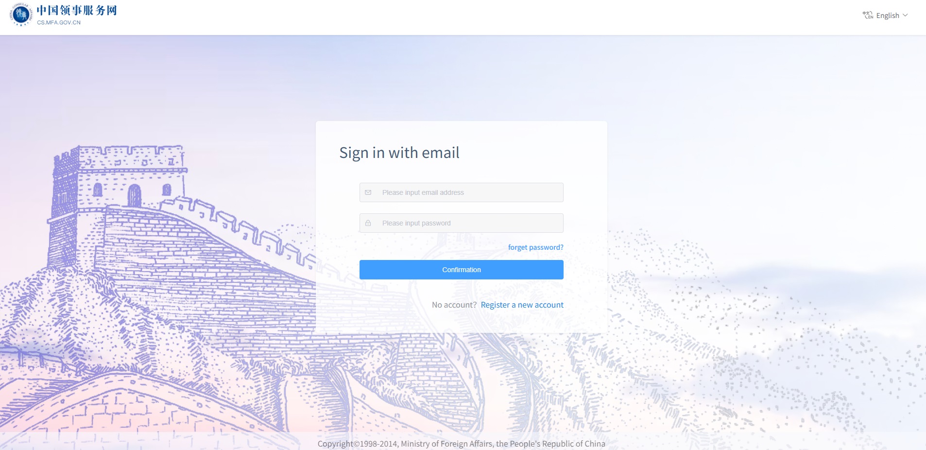 1)使用同一账号登录除马尼拉中心外的其他签证中心网站,例如新加坡中国签证申请服务中心;