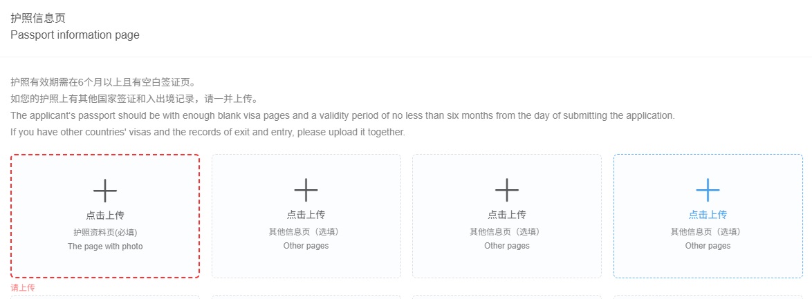 ** 如果你之前获得的中国签证在你的旧护照上,请在上传原有中国签证的同时上传旧护照的信息页。